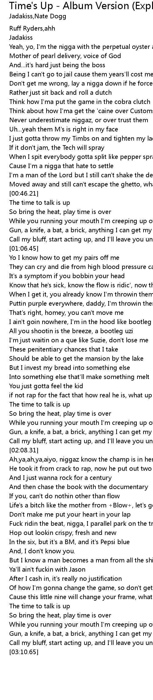 | [00:47.94] | The time to talk is up |
