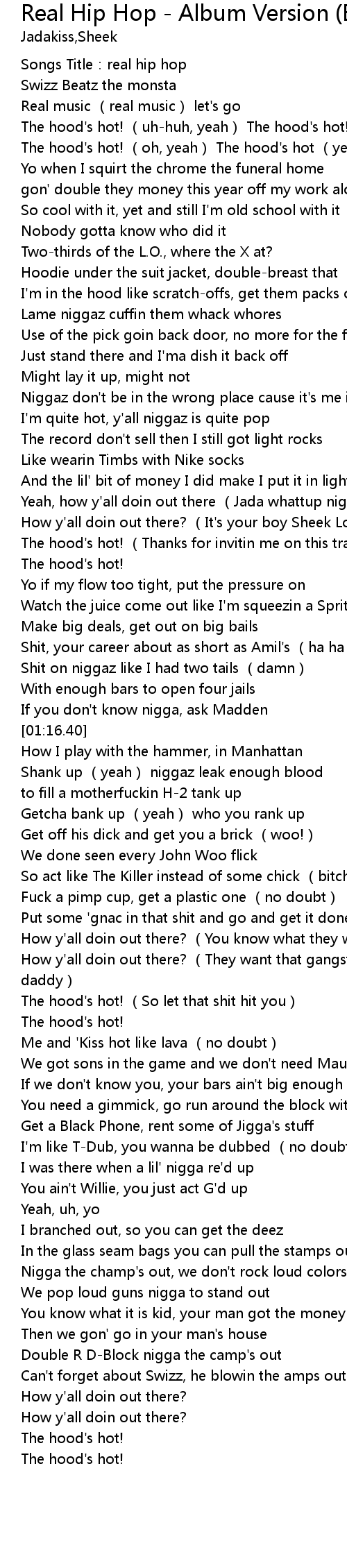 | [01:45.31] | The hood's hot! (So let that shit hit you) |