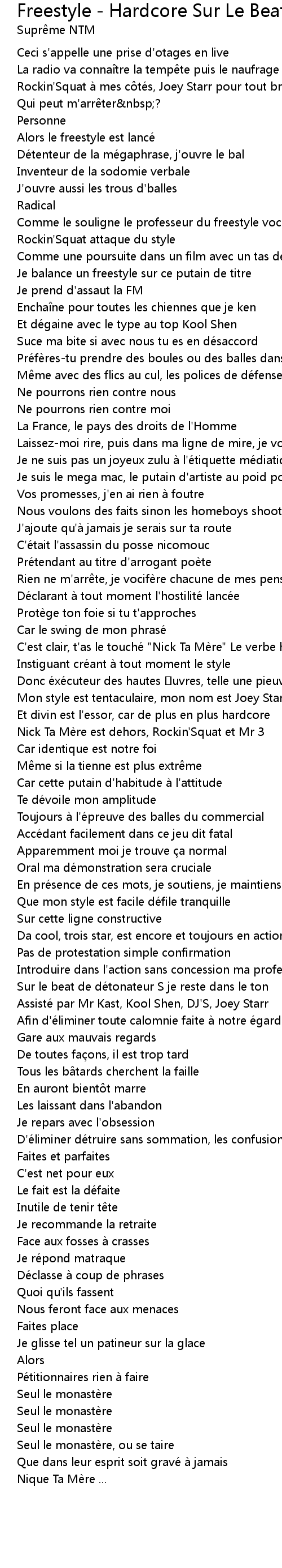 | Song | Freestyle - Hardcore Sur Le Beat |
