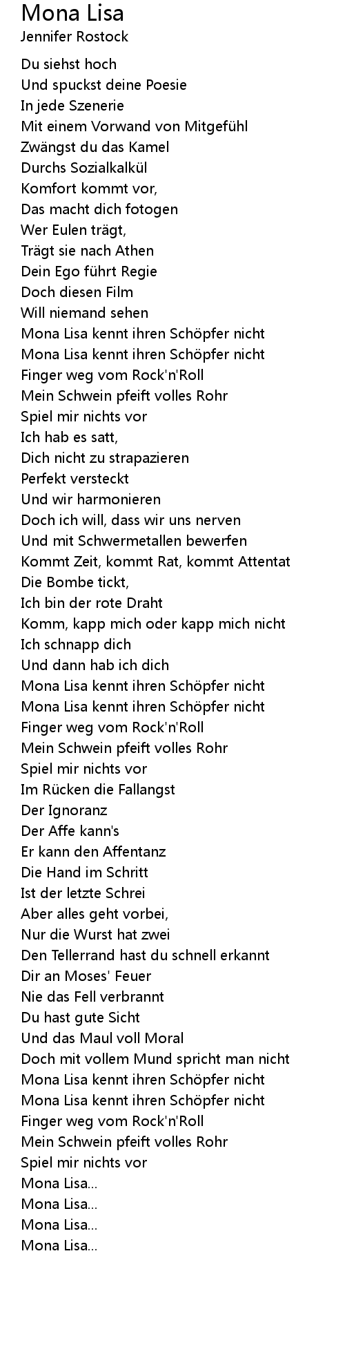 | Mona Lisa kennt ihren Schöpfer nicht | |