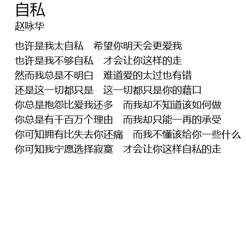 | 你可知我宁愿选择寂寞 才会让你这样自私的走 |
