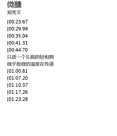 | [02:25.97][00:35.04] | 微醺的心 微醺的情 |