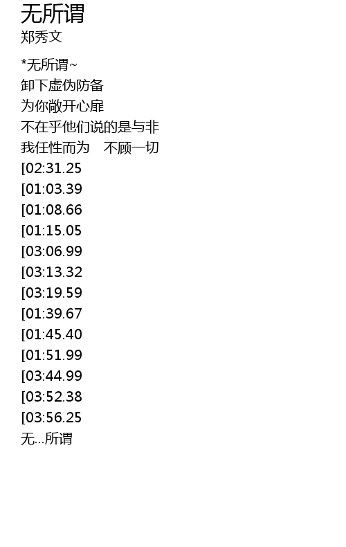 | [03:32.48][01:45.40] | wu suo wei mei you ren liao jie |