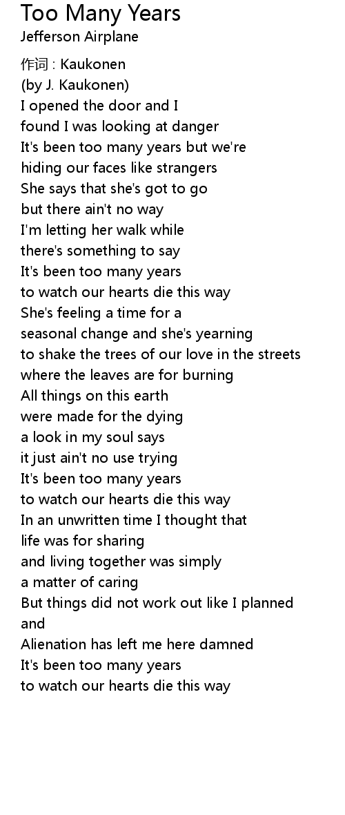 | Song | Too Many Years |