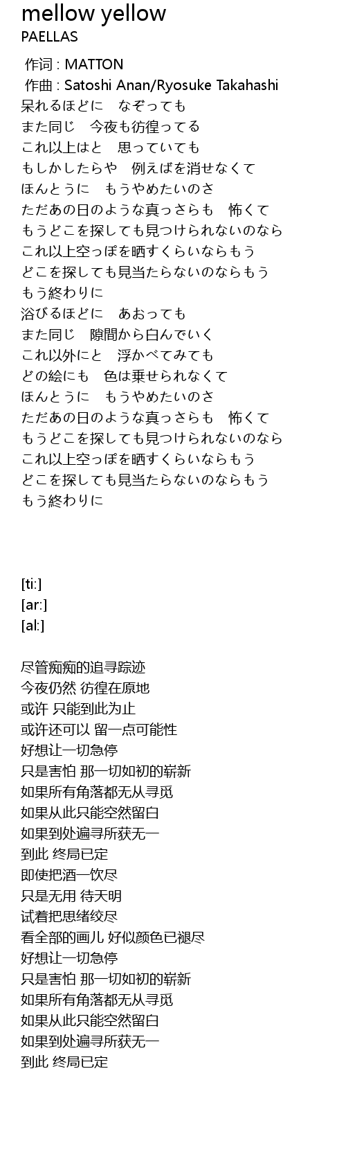 | [00:00.000] | 作词 : MATTON |