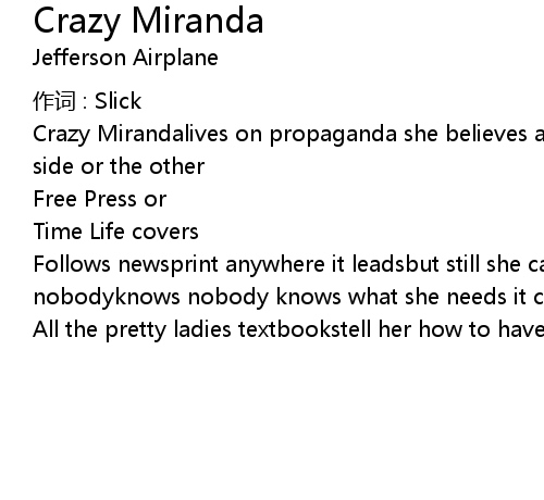 | Song | Crazy Miranda |