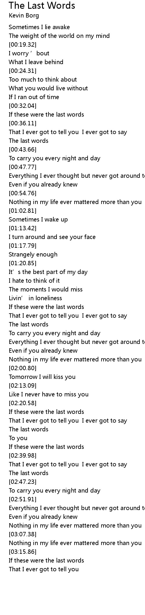 | [03:21.23] | If these were the last words |