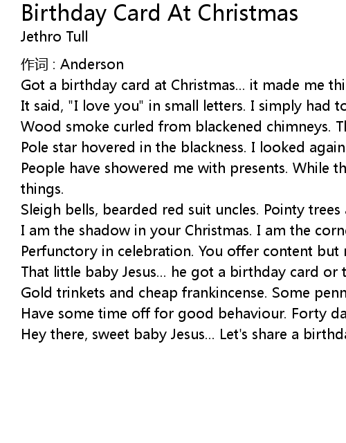 | Song | Birthday Card At Christmas |