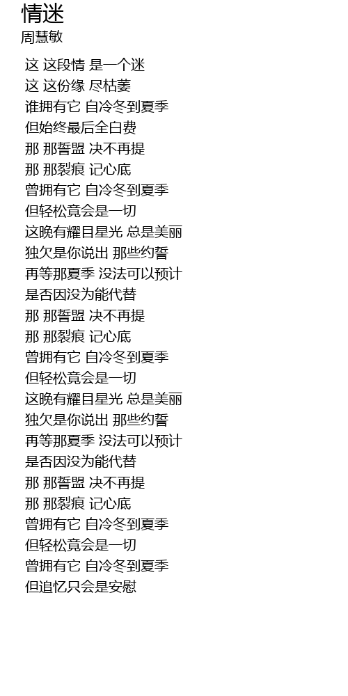 | [00:19.31] | zhè zhè duàn qíng shì yí gè mí |