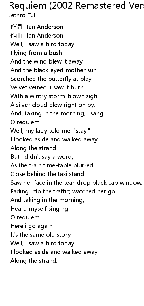 | [00:00.000] | 作词 : Ian Anderson |