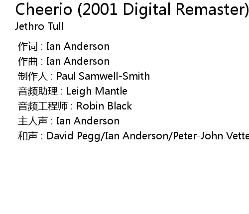 | [00:00.000] | hé shēng : David Pegg Ian Anderson PeterJohn Vettese |