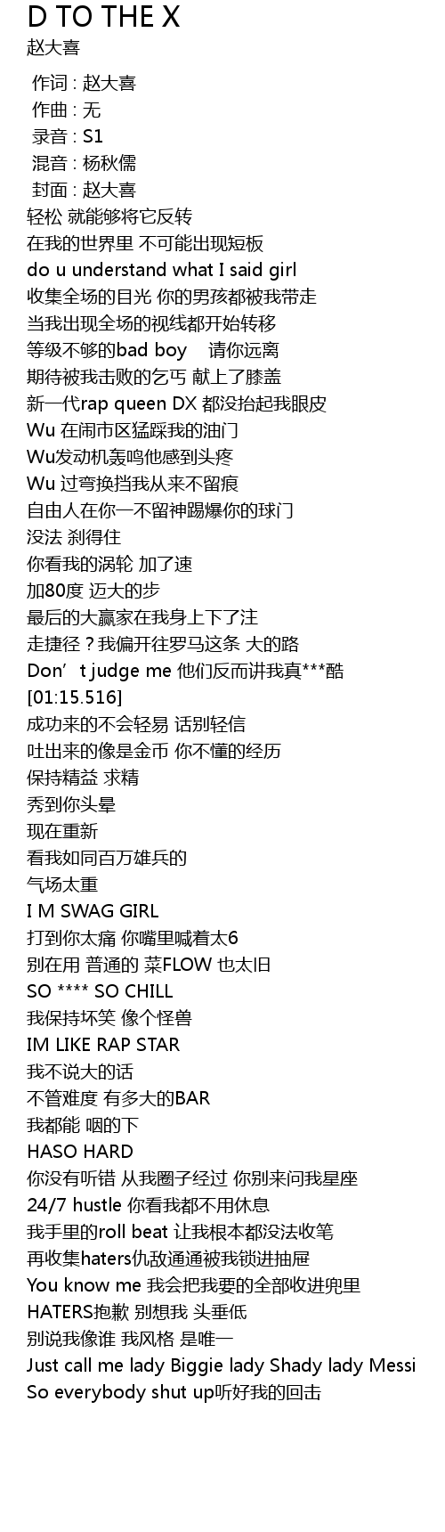 | [00:46.641] | 新一代rap queen DX 都没抬起我眼皮 |