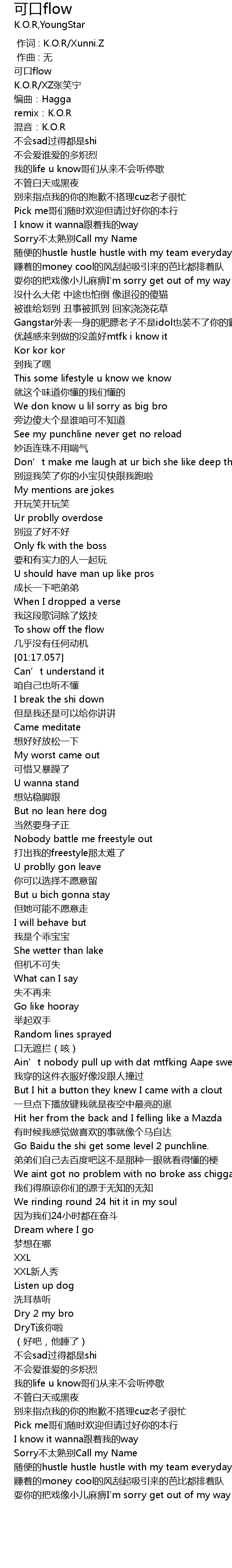 | [01:53.059] | 别来指点我的你的抱歉不搭理cuz老子很忙 |