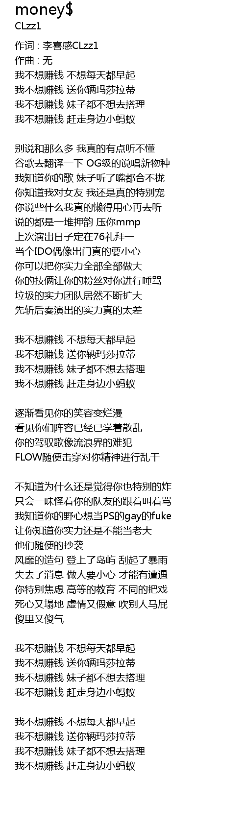 | wǒ bù xiǎng zhuàn qián mèi zǐ dōu bù xiǎng qù dā lǐ | |
