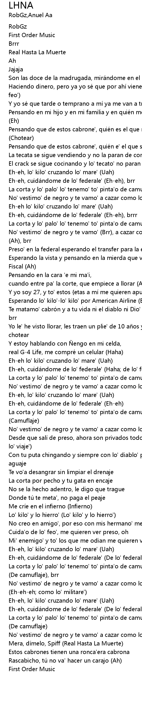 | [00:53.05] | No' vestimo' de negro y te vamo' a cazar como lo' militare' (Uah) |