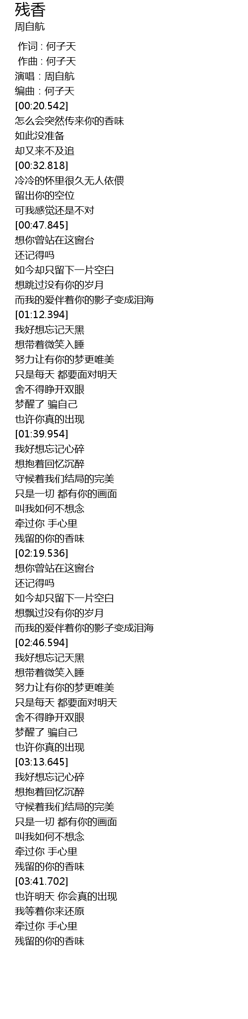 | [04:03.750] | cán liú de nǐ de xiāng wèi |