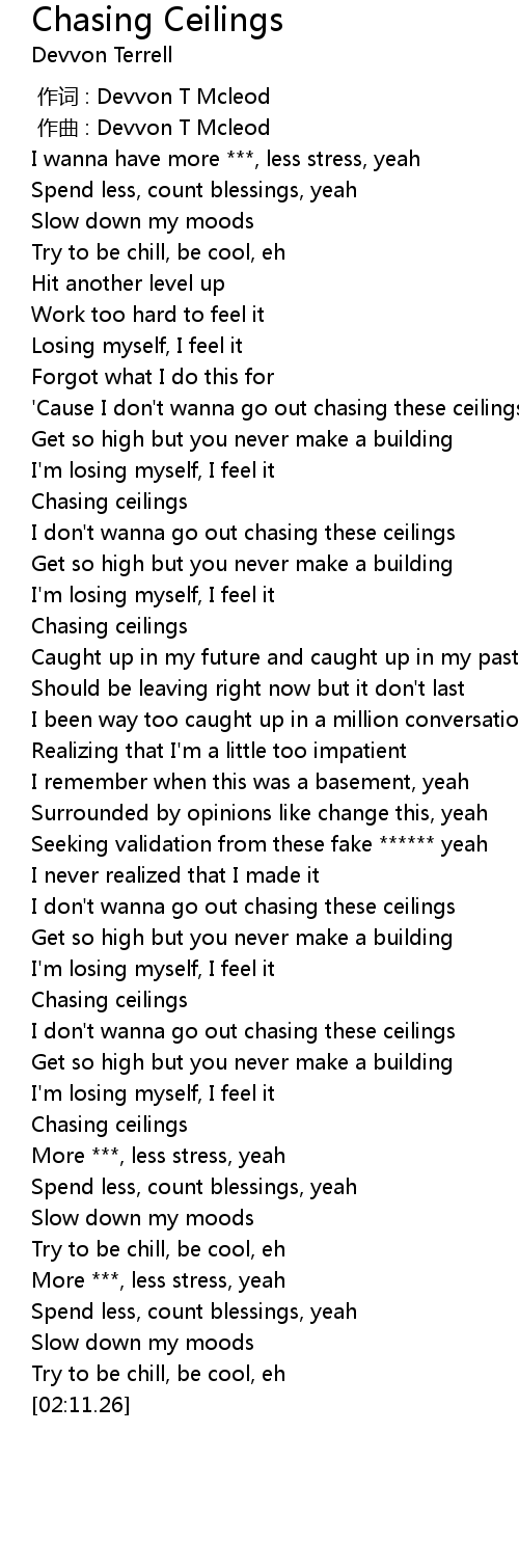 | [00:53.88] | I don't wanna go out chasing these ceilings |