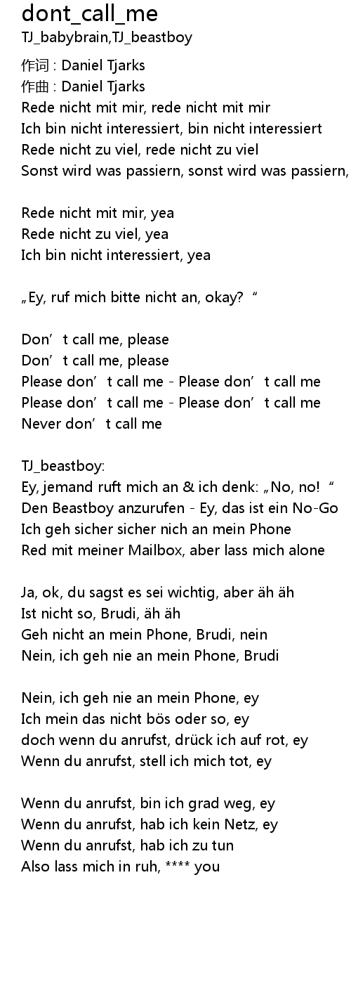 | Ey, ruf mich bitte nicht an, okay?" | |