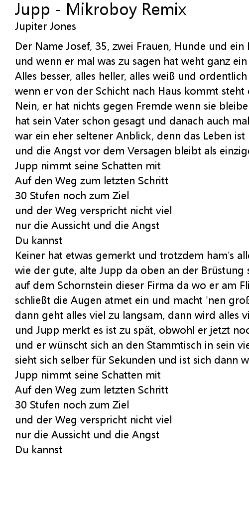 | und Jupp merkt es ist zu sp t, obwohl er jetzt nochmal feiern will | |
