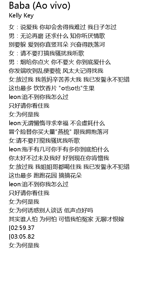 | [03:12.38][02:59.37] | leon: zhuī bú dào nǐ wǒ zěn me guò |