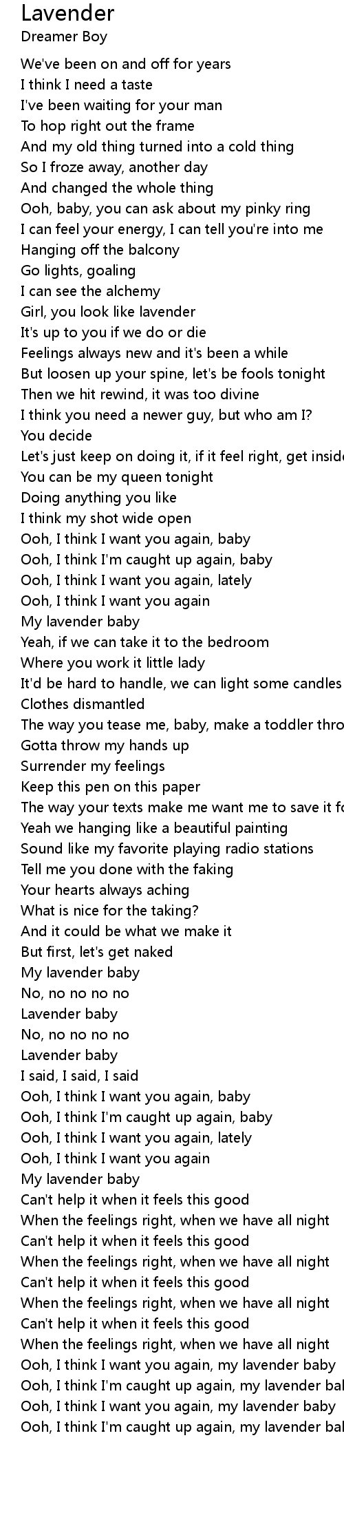Ooh, I think I want you again, my lavender baby |