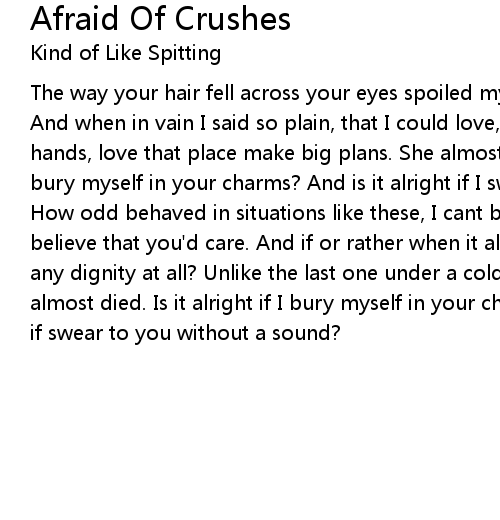 The way your hair fell across your eyes spoiled my plans to never fall again. And when in vain I said so plain, that I could love, love that face hold those hands, love that place make big plans. She almost cried. And is it alright if I bury myself in your charms? And is it alright if I swear to you without a sound? How odd behaved in situations like these, I cant believe that I'm here I can't believe that you'd care. And if or rather when it all goes wrong will I retain any dignity at all? Unlike the last one under a cold sun. Unlike the last one. I almost died. Is it alright if I bury myself in your charms? And is it alright if if swear to you without a sound? |