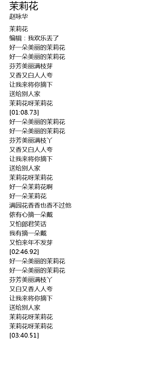 | [01:42.68] | 茉莉花呀茉莉花 |