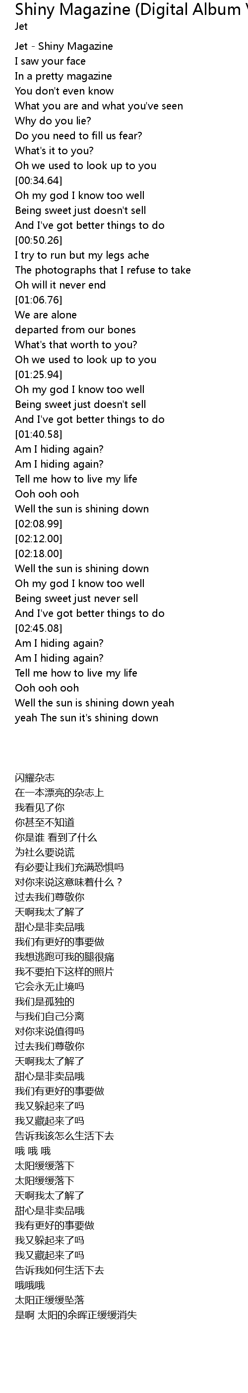 | [00:00.10] | Jet - Shiny Magazine |