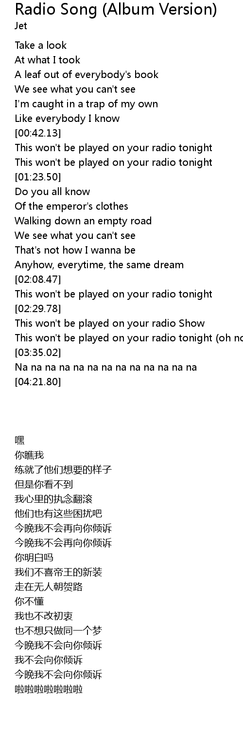 | [00:47.27] | This won't be played on your radio tonight |