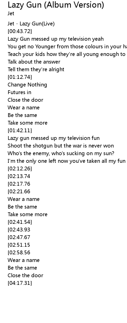 | [00:00.00] | Jet - Lazy Gun(Live) |