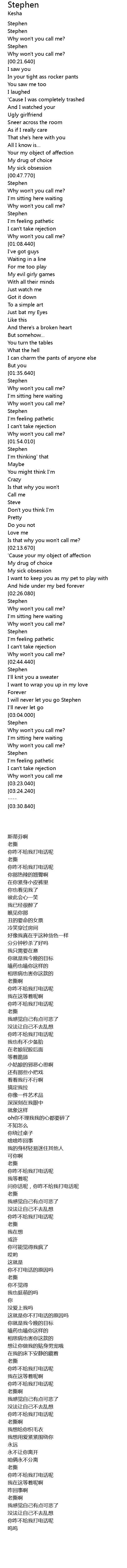 | [02:32.300] | Why won' t you call me? |