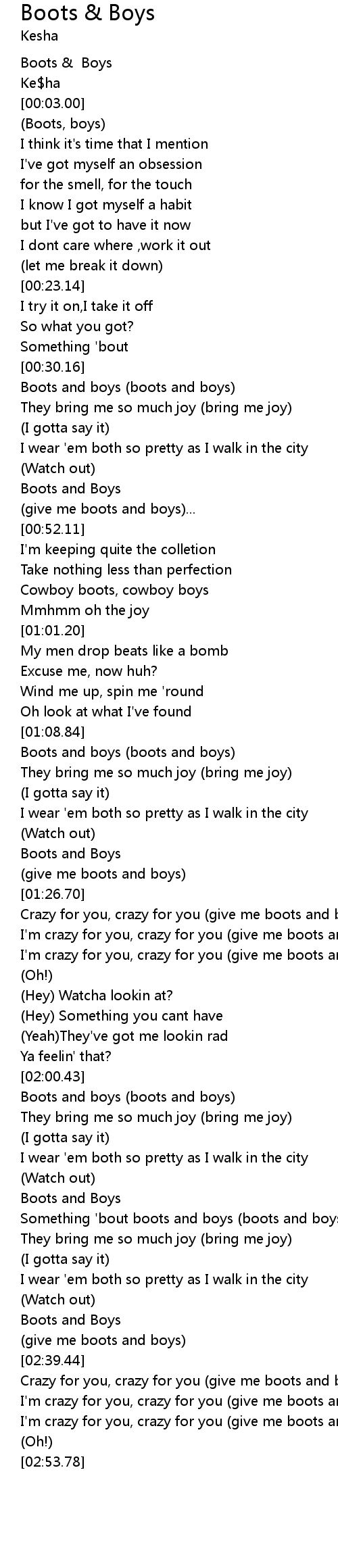 | [02:21.24] | Something 'bout boots and boys (boots and boys) |