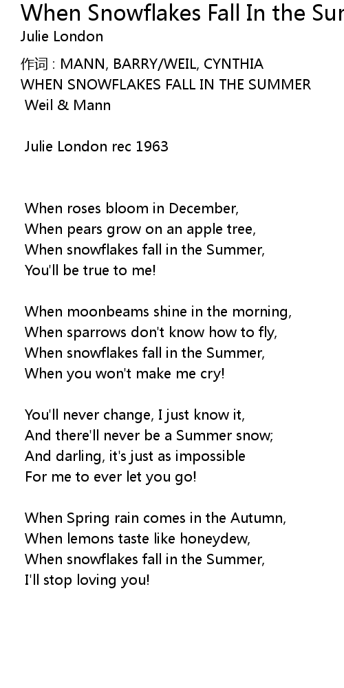 | WHEN SNOWFLAKES FALL IN THE SUMMER | |