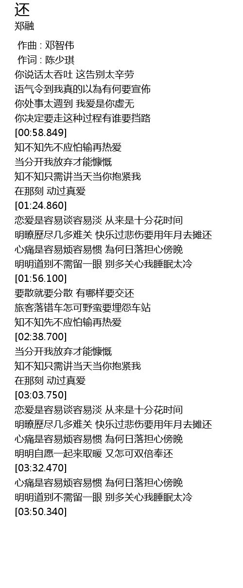 | [03:04.260] | 恋爱是容易谈容易淡 从来是十分花时间 |