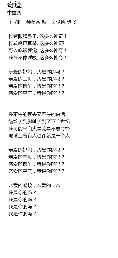 | 词/曲:钟童茜 编:吴俊德 步飞 | |
