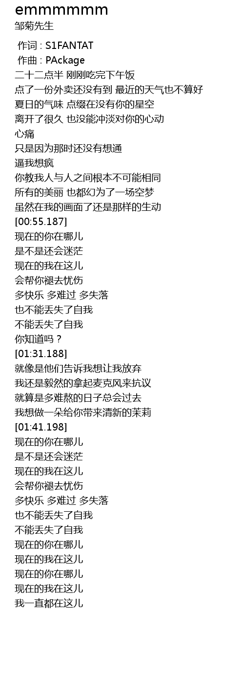 | [00:00.000] | 作词 : S1FANTAT |