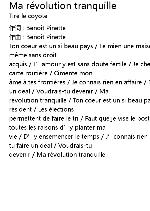 | 作词 : Benoit Pinette | |