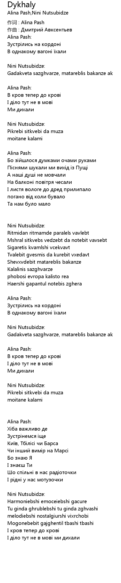 | 作词 : Alina Pash | |