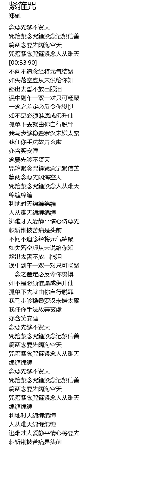 | [00:16.31] | 咒箍紧念咒箍紧念记紧信善 |
