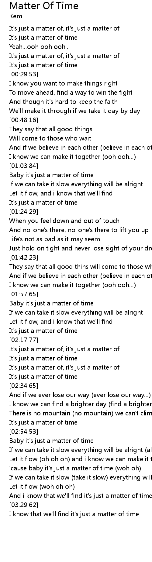 | [03:10.01] | 'cause baby it's just a matter of time (woh oh) |