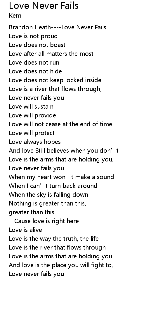 | [00:01.29] | Brandon Heath----Love Never Fails |