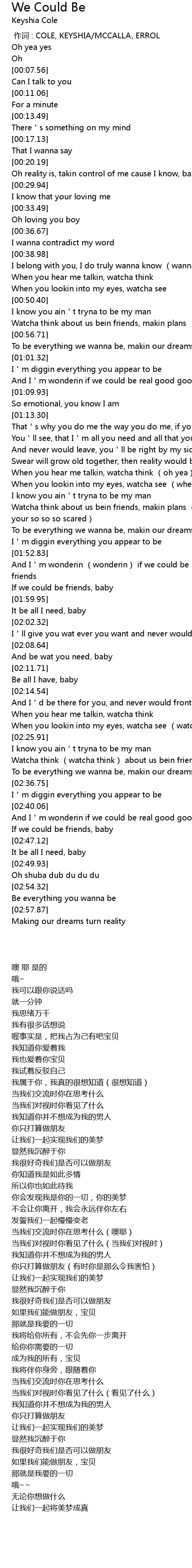 | [00:00.00] | 作词 : COLE, KEYSHIA/MCCALLA, ERROL |