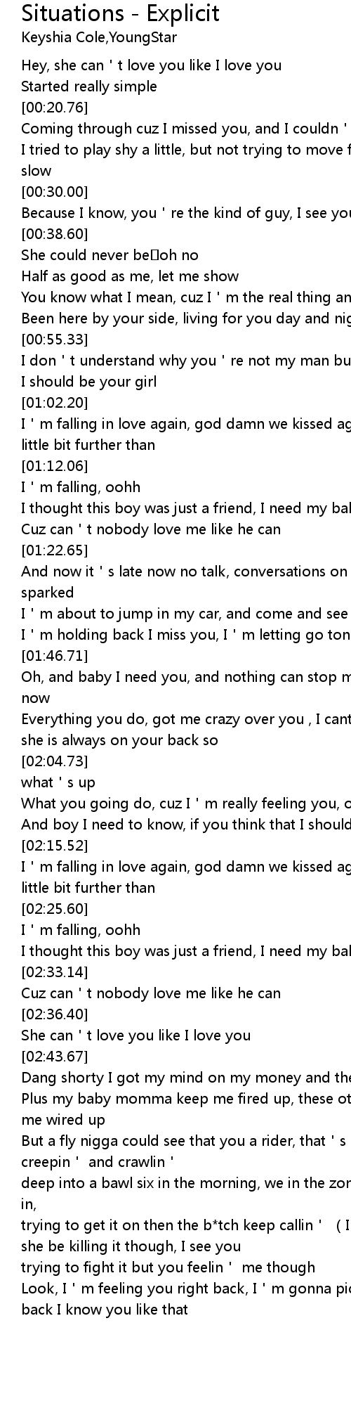| [03:24.57] | Look, I'm feeling you right back, I'm gonna pick you up in the back I know you like that |