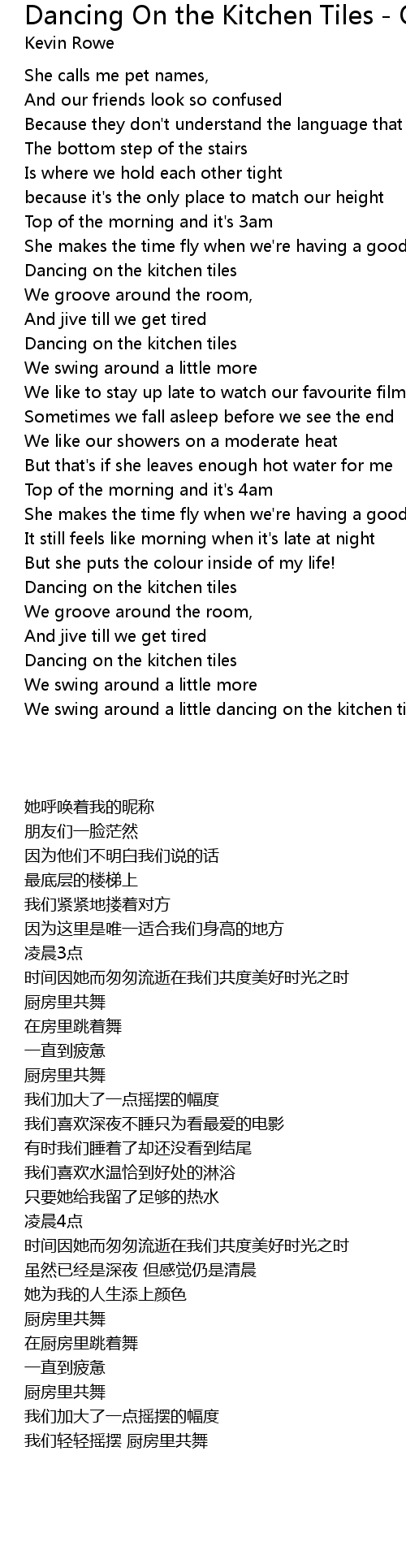 We swing around a little dancing on the kitchen tiles |
