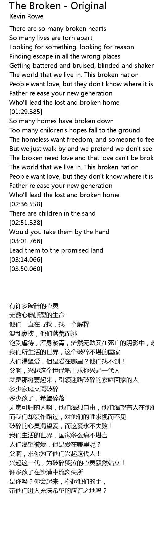 The broken need love and that love can't be broken |