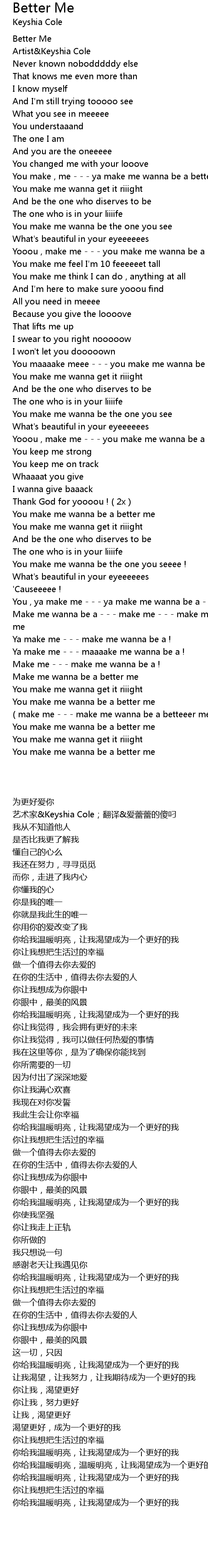 Yooou , make me - - - you make me wanna be a better meeeee |
