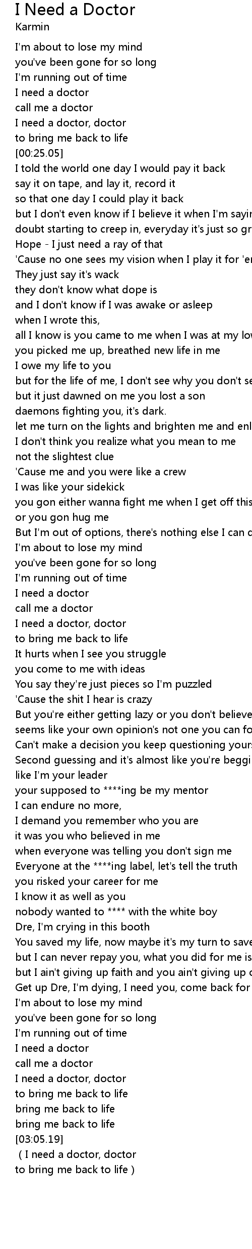 | [03:08.45] | (I need a doctor, doctor |