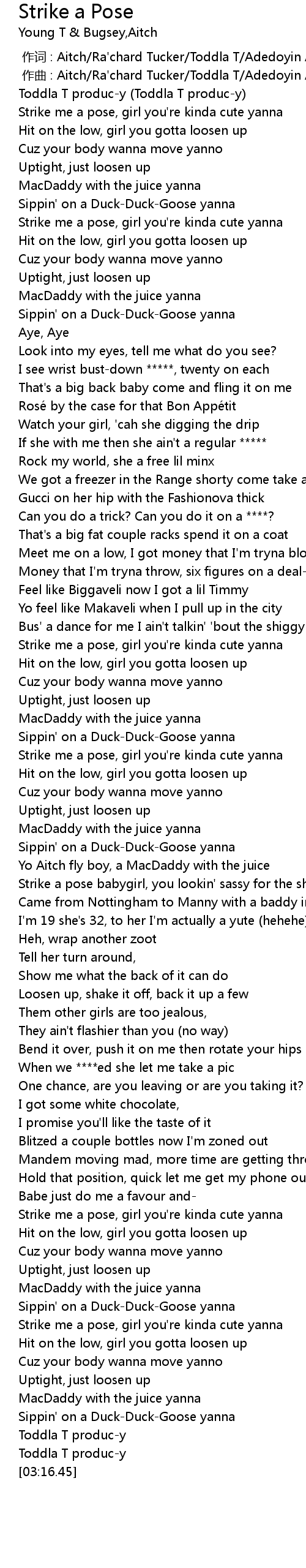 | [02:35.64] | Strike me a pose, girl you' re kinda cute yanna |