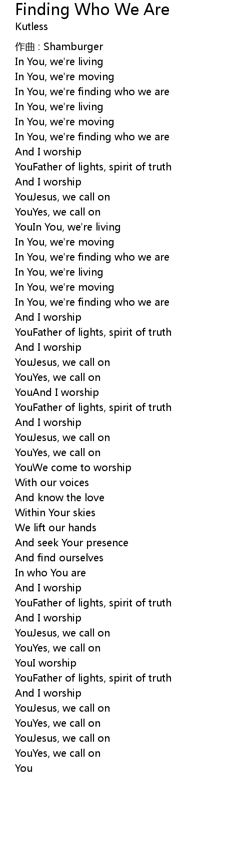 | In You, we' re finding who we are | |