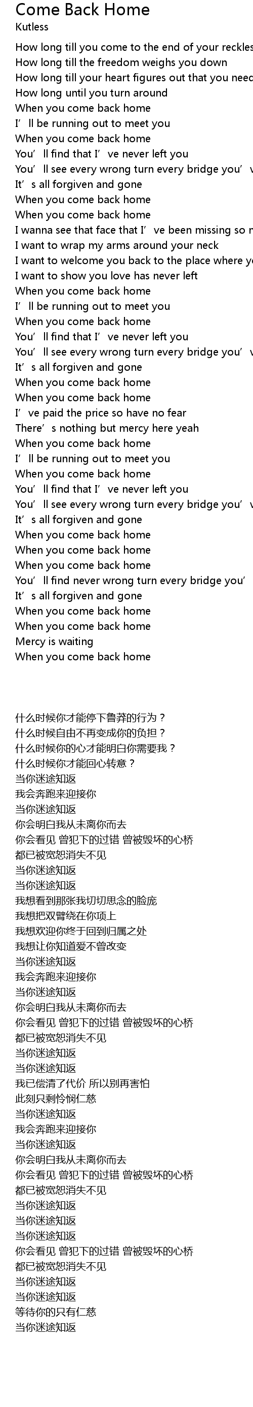 | [00:58.37] | When you come back home |